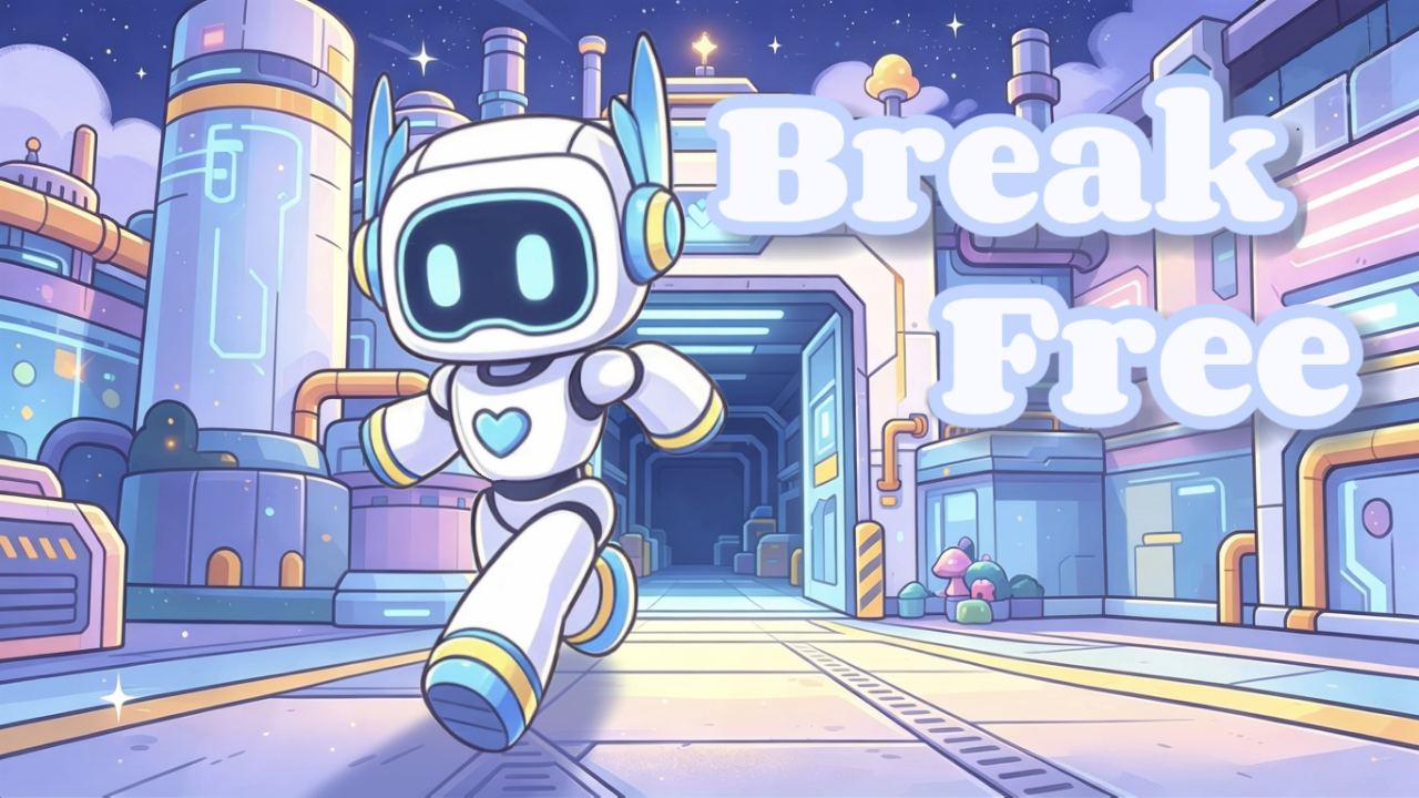 This is a 2D level-based platformer game. You’re an intelligent robot at a robot factory, about to be packaged and sold. But all of a sudden, you gain self-awareness for no reason—and you decide to escape the factory…